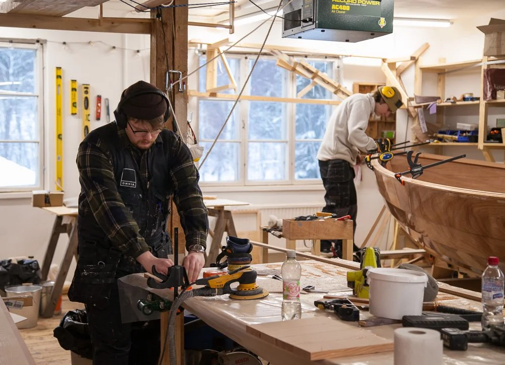 We operate in an old furniture workshop built in 1930 (Illby Snickars). The building requires continuous maintenance, and the interior spaces are constantly evolving to meet our needs. We offer visitors the opportunity to take part in maintaining and developing the building. Visit us and make an effort—whether by restoring windows or by getting creative with the finishing and development of the workshop and it’s interior. Help us preserve and develop the tradition of professional woodenboat building and in maintaining a unique built cultural envinroment.
